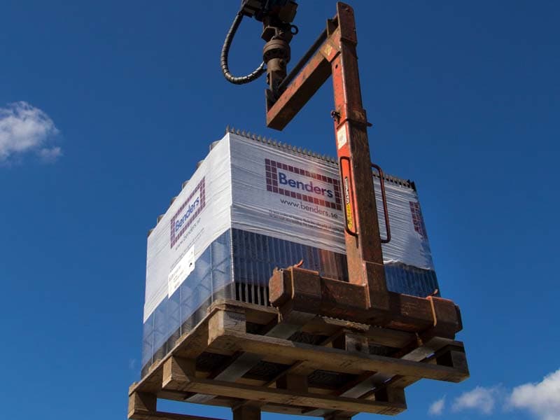 At klype er en mulighet, betyr imidlertid ikke at levering med pallegaffel er et dårlig alternativ. Det er tross alt denne måten å heise takstein på som er mest vanlig, og som de fleste leverandører bruker. Ifølge daglig leder i Benders Norge, Stein Hansen, er det viktig å minimere behovet for å bevege seg rundt på taket når pallene løftes opp.
