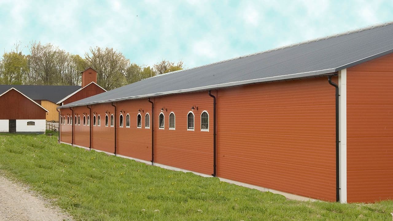 Bilde: Plannja 20-105 er en av de aller mest brukte plateprofilene i landbruket, den passer til alt fra økonomibygg til arkitektprosjekter. Foto: Plannja